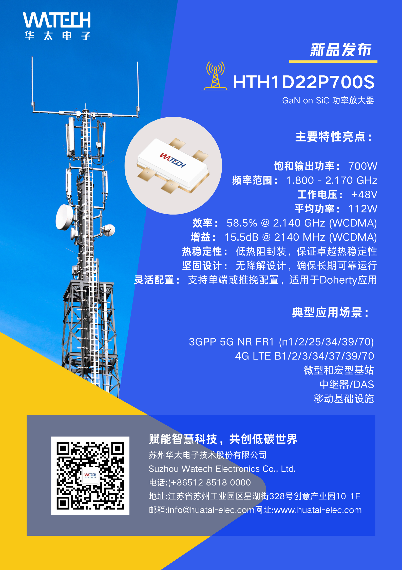 公司成立于2010年3月 ,主要從事射頻系列產品、功率系列產品、專用模擬芯片、工控SoC芯片、高端散熱材料的研發、生產與銷售,并提供大功率封測業務,產品廣泛應用于通信基站、光伏發電與儲能、半導體裝備、智能終端、新能源汽車、工業控制等大功率場景。